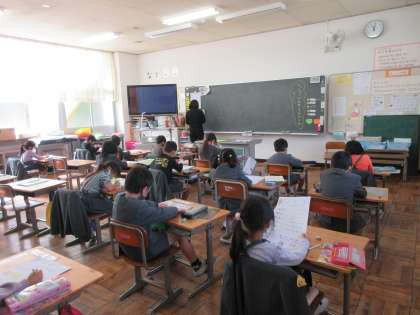 今日の授業の様子です。6年生理科、1年生の様子です。