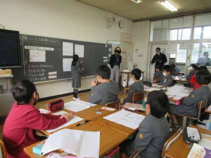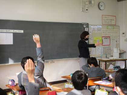 4年生で研究授業がありました。算数で、正方形や長方形を使って、いろいろな形の図形の面積の求め方について勉強しました。