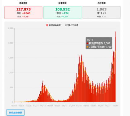 週末となりました。全国で、2000人超の感染者数が続いています。検温、マスク着用、手洗い・消毒、そして密を避けることを心がけて行動するようにお願いします。