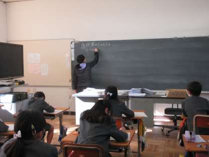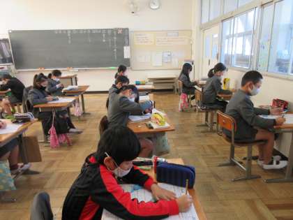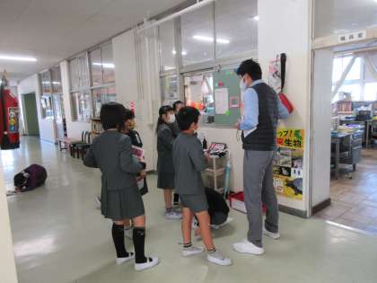 3年生の様子です。校舎内の火災報知機等の防災装置の学習もしています。