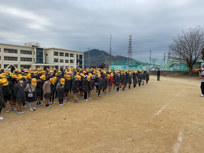 本日2限目に、大地震が起こった想定で、避難訓練が実施されました。今回は、緊急地震速報の音源も入れての訓練となりました。