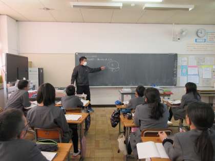 5年生の授業の様子です。社会、少子高齢化社会について触れています。