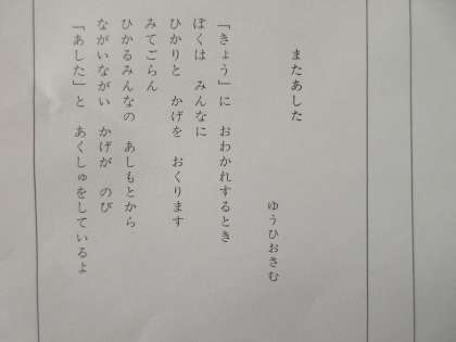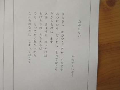 1年生で使っていた詩を一部紹介します。ほっこりとします。