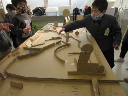 2年生児童対象に、放課後ふれあいルームを開催しました。段ボール工作第2弾です。大いに楽しみ、盛り上がりました。