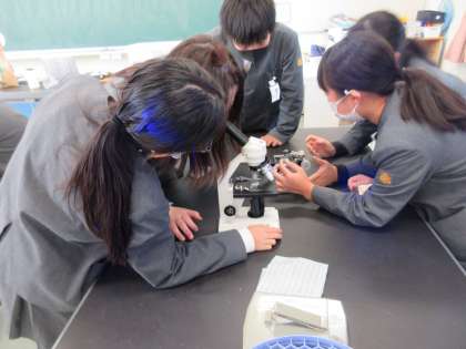 今日の授業の様子です。6年生の様子です。理科は顕微鏡を使って岩石を見ています。