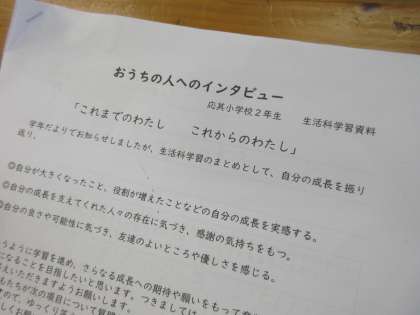 2年生の様子です。自分の成長への振り返りです。お家の人や周りの人みんなに感謝ですね。