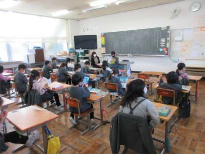 4年生、1年生の様子です。1年生は歌のテストをしました。