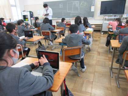 3年生、4年生の様子です。3年生はタブレットの活用をしていました。