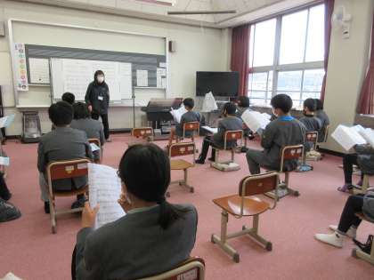 6年生の様子です。防災のまとめ、音楽は歌の練習です。