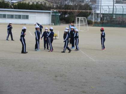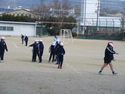 2年生の様子です。体育はサッカーをしています。