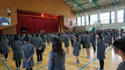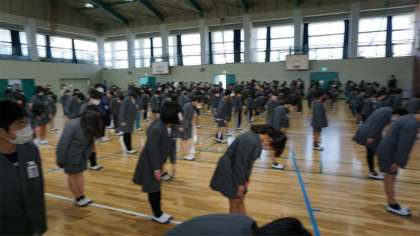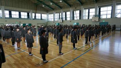 1限目に全校集会をしました。ソーシャルディスタンス、換気をとっての集会です。表彰式、校長講話、そして児童会からの年度末の総括のお話をしました。