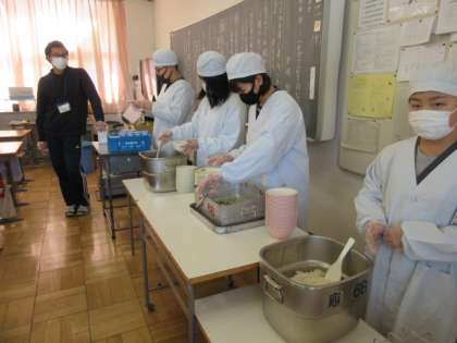 今日の給食の様子です。6年生の様子。さすがに6年生とあって準備も、待っている態度も落ち着いています。