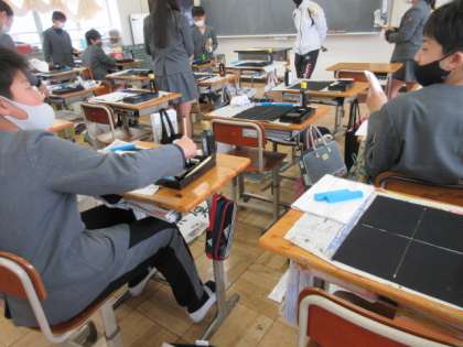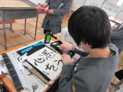 6年生の様子です。紙遊苑で作った和紙にメッセージを書いています。
