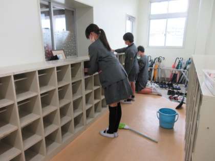 続きです。6年生家庭の授業で、清掃作業を行っています。