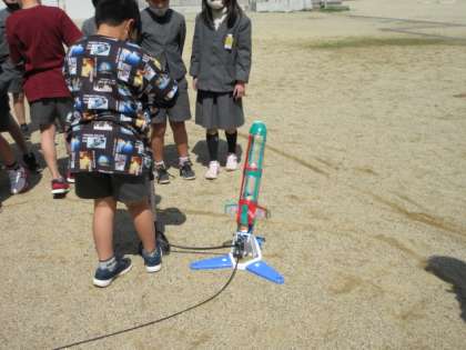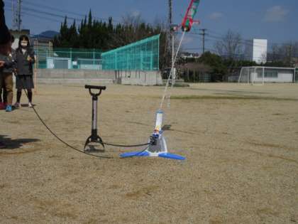 4年生の理科実験。ペットボトルロケットに挑戦です。
