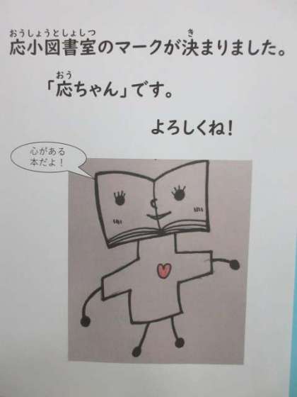 図書室 公開日 2021/04/12 更新日 2021/04/12 その他 図書ボランティアさんが書いてくれました。ありがとうございます。図書室のマークも児童のみんなの応募から、決められました。「応ちゃん」です。よろしくお願いします。 いいね(0)