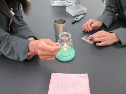 6年生の様子です。理科は燃える実験です。線香の煙の動きの観察です。