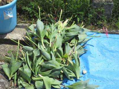 2年生、チューリップの球根を取り出しました。次はミニトマトの準備です。