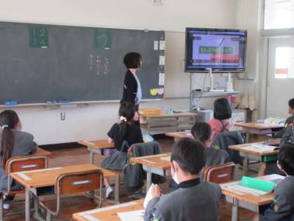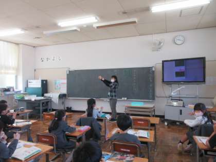 今日の授業の様子です。1年生。鉛筆の持ち方の学習です。