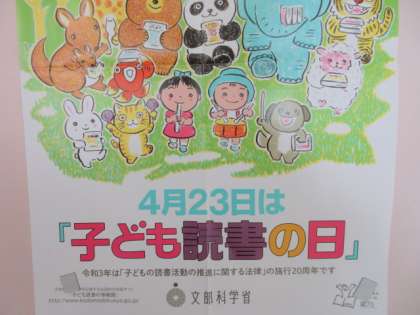 4月23日は子ども読書の日です。本をいっぱい読もう!図書ボランティアさんも、みんなのために頑張ってくれています。校長室前にも、新しい本が並びました。ぜひ、読みに来てください。