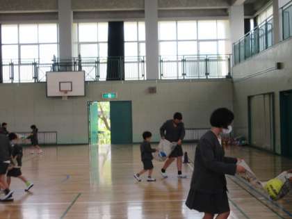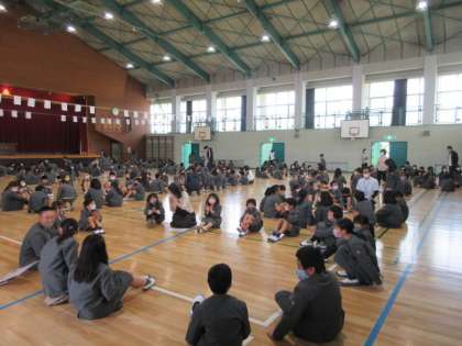 続きです。縦割り班に分かれて、自己紹介のあと、みんなでゲームを楽しみました。