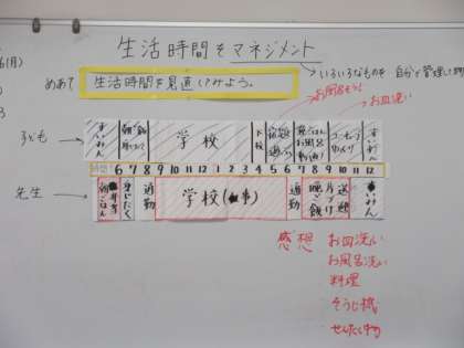 6年生、4年生の様子です。家庭科で生活時間の振り返りをしています。スマホ、ゲームはほどほどにね。