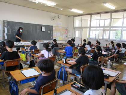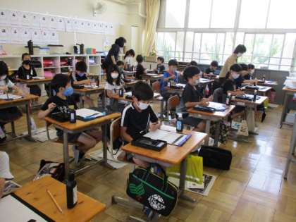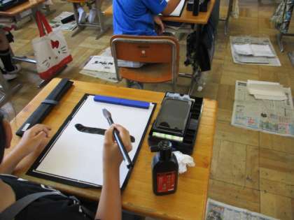 3年生で初めて毛筆を学習します。太筆は、立てて使いますが、慣れないうちは鉛筆のように斜めになりがちです。