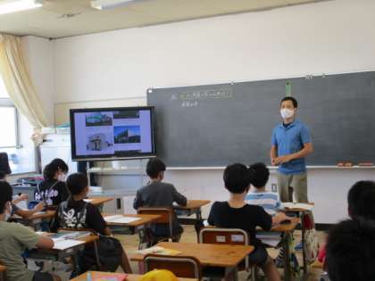 5年生の社会科は、「北海道の家の工夫」の学習です。TV画面に映し出された映像から「屋根が平らになっている。」…と様々な特徴を見つけていました。