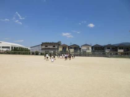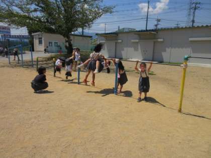 暑い中、運動場で楽しく遊びました。水分補給を忘れずに!