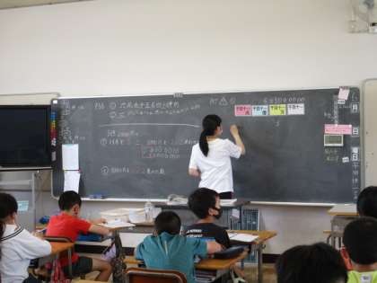 6月14日(月)今4年生も大きな数を学習しています。4年生は「一億をこえる数」になります。4桁で区切ると分かりやすいことに気づき、ノートに赤線で記していました。