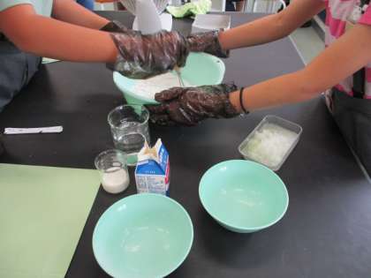 (中)理科クラブ ホウ酸団子を小麦粉や玉ねぎ等で作りました。