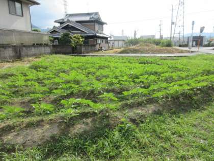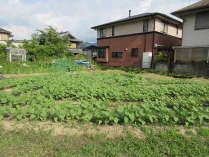 夕方のひまわり畑の様子です。朝とは逆に、葉がすべて西の方を向いています。葉が太陽の方向に、動いていることがよくわかります。
