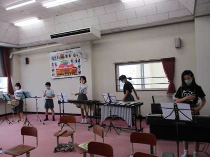 ラバーズコンチェルトの合奏に向けてパート練習をしているところです。木琴やトライアングル等いろいろな打楽器や縦笛で演奏します。