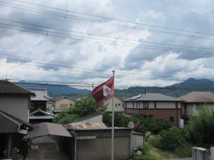 今日は風もあり、「はためく校旗 つるかしわ」の歌詞のとおりになっていました。背景の山々が綺麗です。