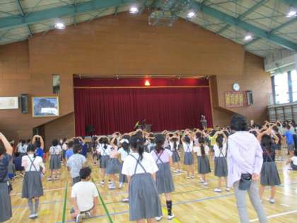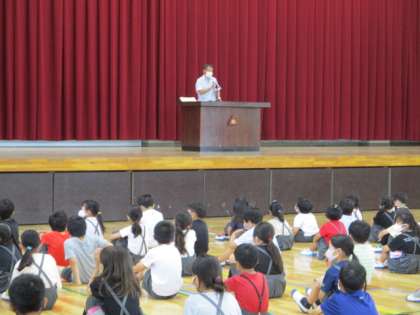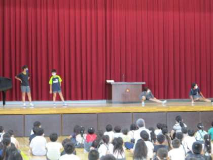 プール開き集会 公開日 2021/06/21 更新日 2021/06/21 行事等 6月21日(月) 今日からプール開き。プール開き集会を行いました。体育主任の先生から安全に楽しく水泳をする諸注意を聞き、その後、体育委員による「はむすたあ劇」がありました。「はむすたあ」は、「はしらない、むりはしない、すぐに先生にいう、たいそうをしっかりする、あぶないことをしない」です。その1つ1つを劇で分かりやすく知らせてくれました。その後、○×ゲームをしました。 いいね(0)