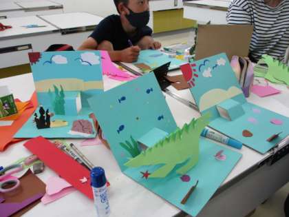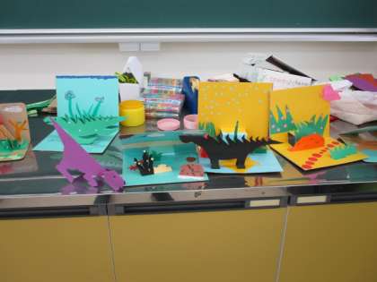 放課後ふれあいルーム 公開日 2021/06/21 更新日 2021/06/21 放課後ふれあいルーム 6月21日(月) 今年度第1回目の放課後ふれあいルームがありました。今回は「はさみで迫力ある恐竜を作ってみよう!」です。恐竜の背中の模様が難しそうでしたが、説明を聞くと、こつをつかみ、うまく作ることができました。 すてきな恐竜と景色を作りあげました。 いいね(0)