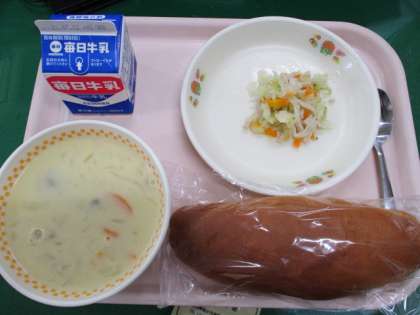 クラムチャウダーには、にんじん、じゃがいも、たまねぎ、マッシュルーム、ベーコン、大豆の他にあさりが入っていました。あさりの味がきいていました。