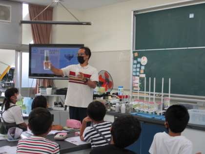 4年生の理科では、土の粒の大きさや水のしみこみ方について学習していました。実際の砂や土で実験しました。