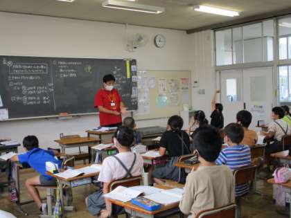 4年生は、水道の学習をしています。おいしくて安心な水がお家に届けられるまで、また使われている水の量についてグラフから考えていました。