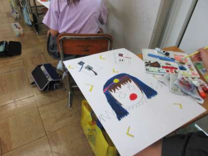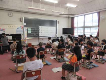 4年生の様子です。防火ポスター描きと音楽のリコーダーの様子です。