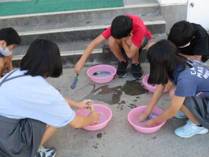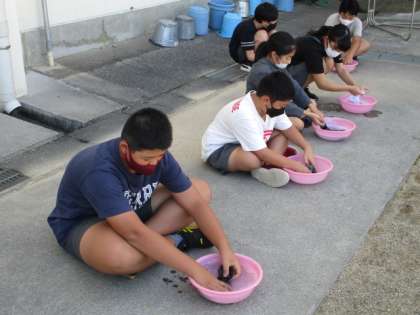 6年生では、家庭科で「靴下を洗おう。」の学習をしています。
