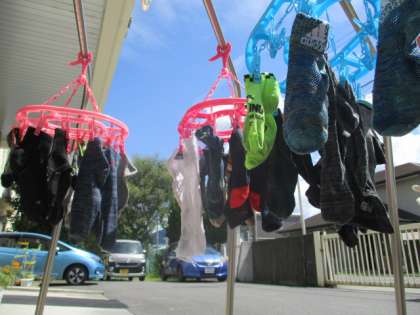 秋風と太陽のもと、靴下も気持ちよさそうに風になびいていました。