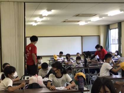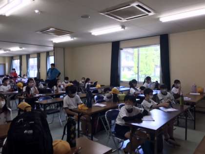 5年生が紀北青少年の家に到着し、オリエンテーションをしました、