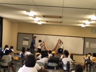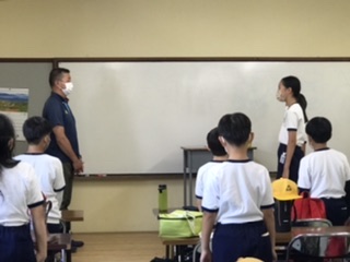 オリエンテーションで毛布等の片付け方を前でしました。その後、入所式を行いました。