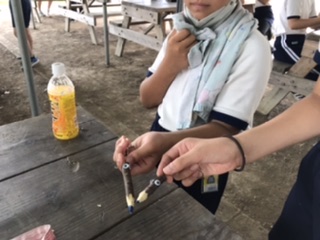 小刀で木を削るのは、思うように削れないようでしたが、粘り強く取り組みました。それぞれの"えんぴつくん"が出来上がりました。