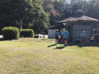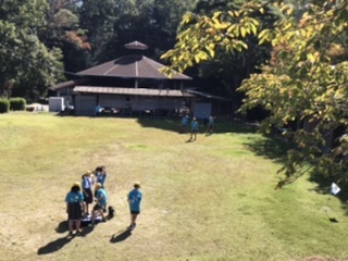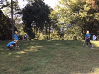 各グループでグランドゴルフのコースを決めました。全部で16ホールです。少ない回数でホールに入れられるかな?