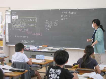 算数の時間には、あまりのあるわり算やあまりのない場合について学習していました。静かに集中していましたね。