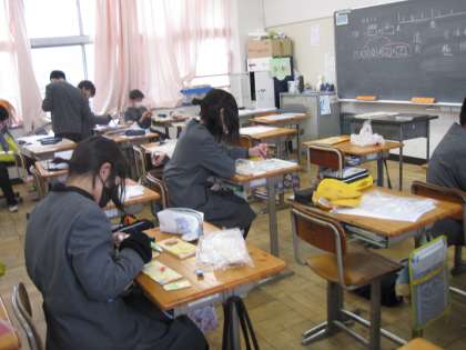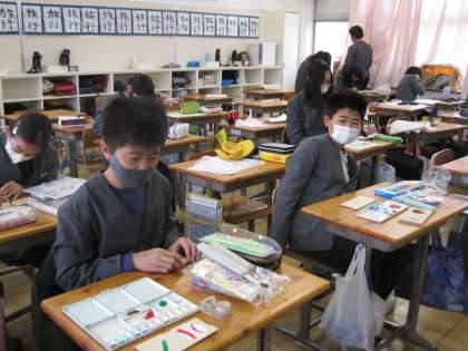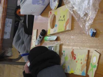 6年生の卒業生政策も進んでいます。彫刻刀でほり、立体的になりました。