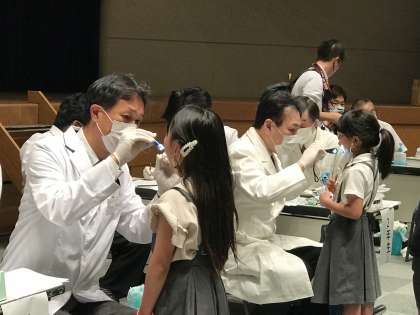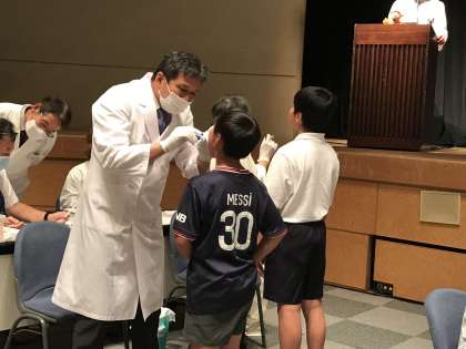 審査の後に、「歯と口の学習」では、「世界でいちばん歯が多い動物は何でしょう?」などの質問も出され、積極的に手を挙げて答えていました。