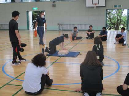 伊都消防署の消防士さんに来ていただき、応急手当講習会を実施しました。